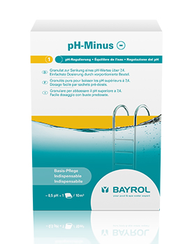 рН-минус предназначен для снижения рН воды в плавательном бассейне. Существенная дезинфекция воды в плавательном бассейне предполагает значение рН в области 7,0 - 7,4.