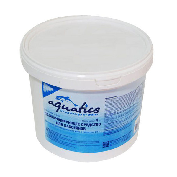 Экологически чистое средство для уничтожения грибков и бактерий. Обеспечивает полную дезинфекцию воды. Таблетки белого цвета с запахом хлора.