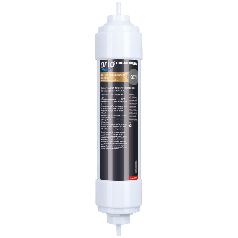 Фильтрующий элемент Новая Вода K871 используется в качестве первой ступени фильтров Prio® Новая Вода® Expert М200, М300, М310, М312, М400, систем обратного осмоса Expert Osmos МO510/МO520/МO530/МO600/MOD600, Econic Osmos TO300, диспенсере P500 и др.