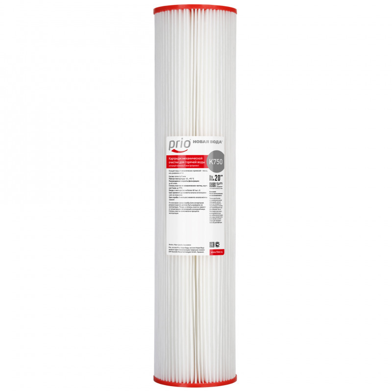 Картридж механической очистки Новая Вода К750 ВВ для горячей воды из полиэстра с характерным размером пор 5 мкм.