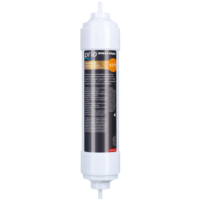 Фильтрующий элемент K879 используется в качестве опционального минерализатора в системе Prio® Новая Вода® Osmos Stream Compact OD200, системах обратного осмоса Praktic Osmos OU400, OU500, Econic Osmos OD310/O300/TO300 и др.