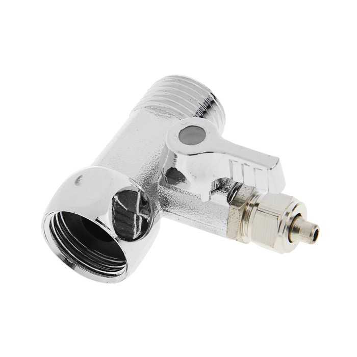 Тройник металлический цельный для подсоединения системы очистки воды к линии водопровода со встроенными краном и фитингом (½”—½”—¼”).