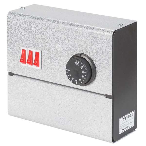 Пульт ПУЭ - 10/03 применяется для управления температурой теплоносителя в котлах при использовании трехступенчатого электронагревательного элемента типа ТЭНБ мощностью до 10 кВт.
