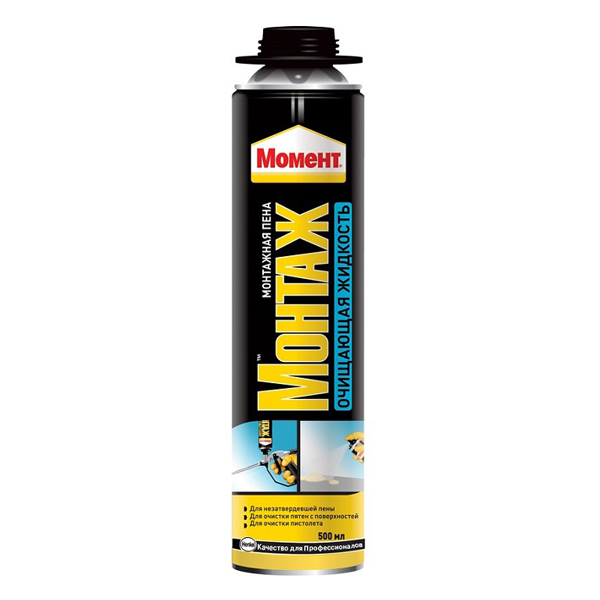 Очищающая жидкость МОМЕНТ отлично подходит для эффективного удаления неотвердевшей пены, а также очистки клапана и пистолета.