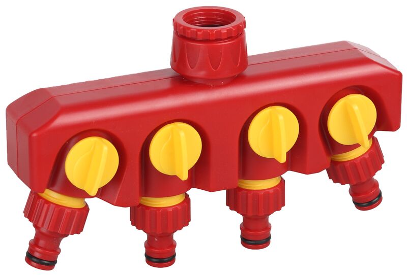Распределитель GRINDA применяется для одновременного подключения четырех водозаборных линий к водопроводной трубе или крану с внешней резьбой 1/2" или 3/4".