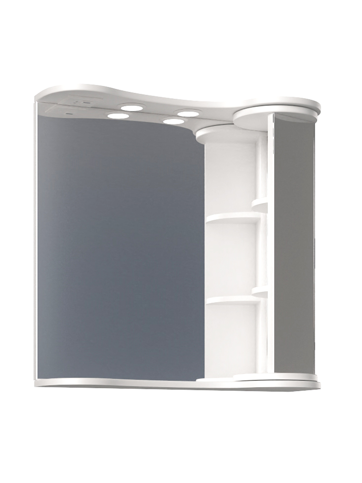 Имеет ширину 70 см, с поворотным механизмом, 2-мя полками и подсветкой.