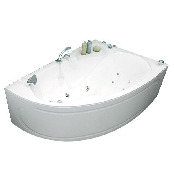 Акриловая ванна "Кайли". Дно с рифленой массажной поверхностью, широкая спинка с подголовником, установка смесителя, лицевой экран.