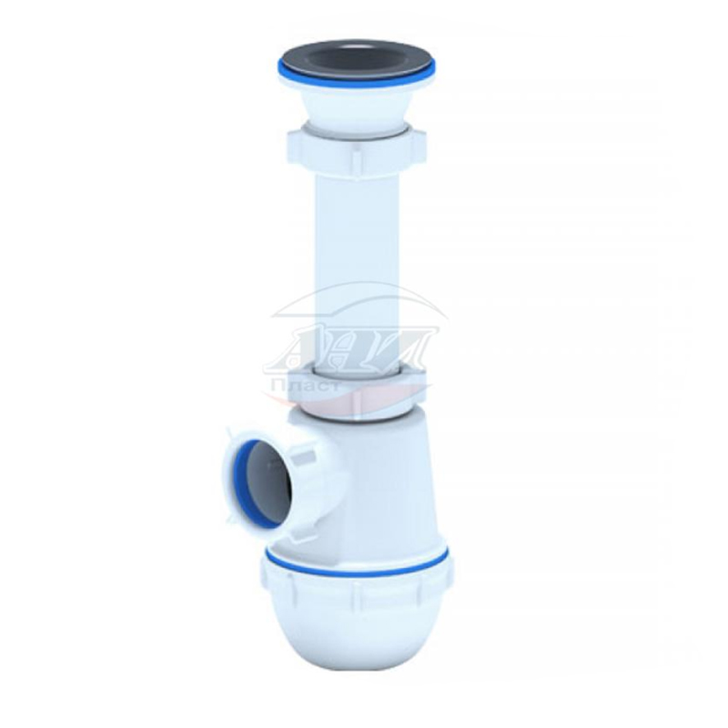 Сифон для кухонных моек с диаметром сливного отверстия 50 мм, бутылочного типа с увеличенным корпусом. С разборным выпуском и нержавеющей решеткой.
