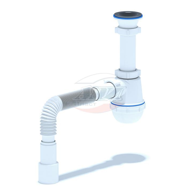 Сифон для кухонных моек с диаметром сливного отверстия 50 мм, бутылочного типа с увеличенным корпусом. С разборным выпуском и нержавеющей решеткой.