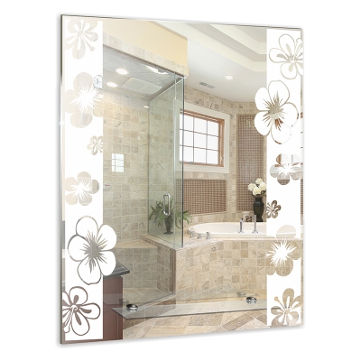 Зеркало для ванной комнаты "Флора", с дополнительным декорированием пескоструйным рисунком.
